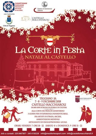 Storie di Principi, Conti, Baroni e Vicerè rivivono al Castello Macchiaroli di Teggiano, dal 7 al 9 Dicembre 2018. L’affascinante fortezza valdianese, da 800 anni scrigno di storia e cultura, si prepara ad ospitare un evento indimenticabile in vista del Natale, “La Corte in Festa – Natale al Castello”, un’esperienza irripetibile nel proscenio da favola che fu vanto dell’illustre casata Sanseverino.