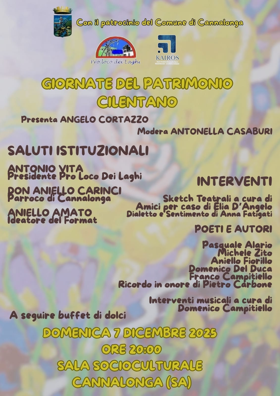 Domenica 7 dicembre 2025, a partire dalle ore 20, le Giornate del Patrimonio Cilentano,